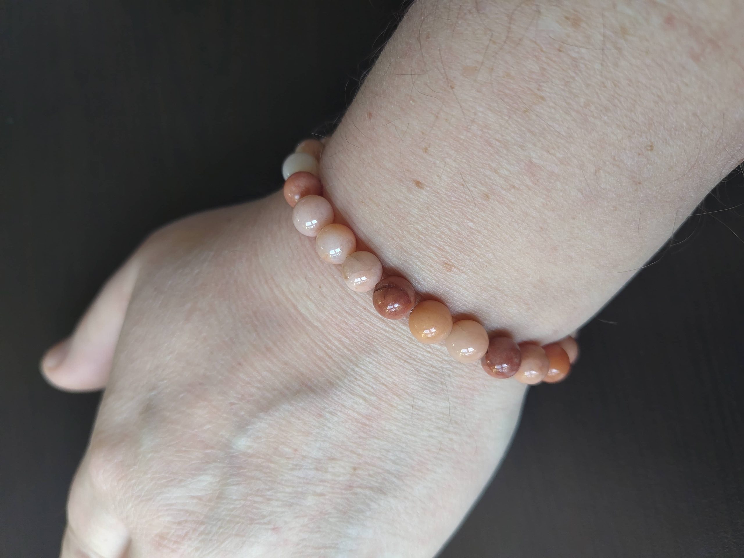 L’Aventurine Pêche (ou aventurine orange) est bénéfique pour la créativité, la joie de vivre et la libération des schémas émotionnels répétitifs. Elle est également une pierre porte-bonheur.
